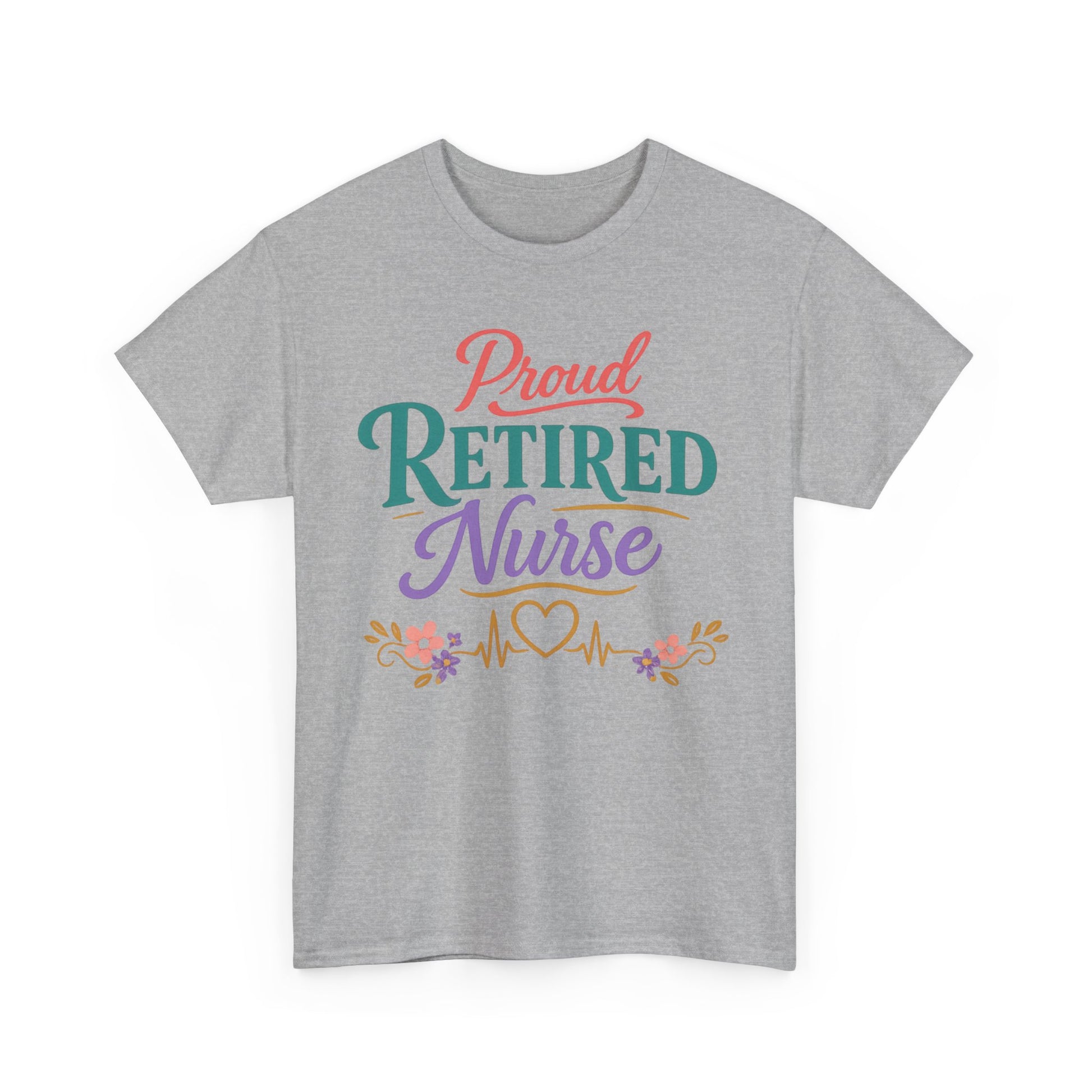 Soft, confident, and quietly celebratory — this classic cotton tee carries a gentle, colorful design that says “Proud Retired Nurse” without shouting. Lightweight but durable, the shirt drapes in a relaxed cut and feels familiar from the first wear. The cheerful lettering and small florals sit over the chest like a badge of quiet accomplishment, a comfortable companion for morning coffee on the porch, volunteer shifts at the clinic, or catching up with old coworkers at a reunion. It’s for someone who traded charts and night shifts for mornings that belong to them, and still carries their care and experience wherever they go.